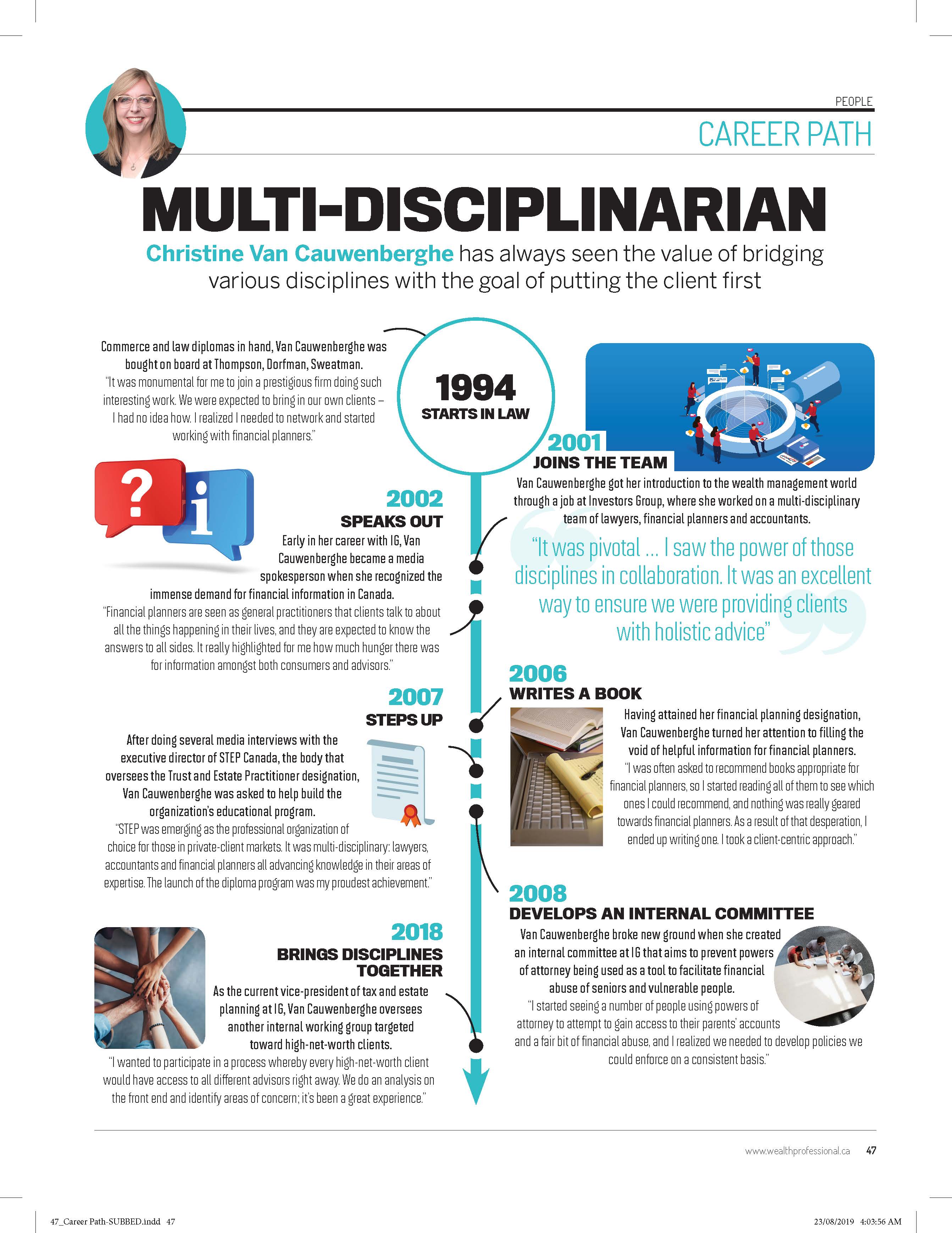 When she saw a void in how financial advisors were instructed to address the unique needs of their clients, she authored Wealth Planning Strategies for Canadians, an annual publication by Thomson Carswell that takes a client-first approach to how complex problems are solved.